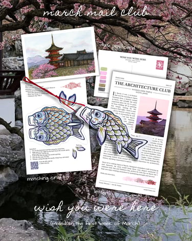 Discover new buildings and fill your mailbox every month with watercolor illustrations.
