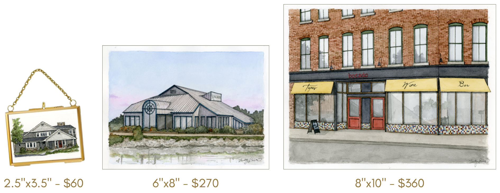 Please submit clear photos of the building you’d like painted. Multiple images are welcome, but it’s especially helpful if you can provide a straight-on photo. The better the quality of the reference images, the more accurately I can capture the essence of the place.