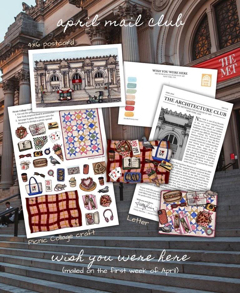 Once shipped, please allow up to 14 business days for U.S. delivery and up to 21 business days for international delivery. If your mailer hasn’t arrived after the estimated delivery window, it’s possible it may have been delayed or lost in transit. Please email me at artsbytrinity@gmail.com with the following information so I can verify your order and help resolve it: your full name, shipping address, and the date you joined the Architecture Mail Club.