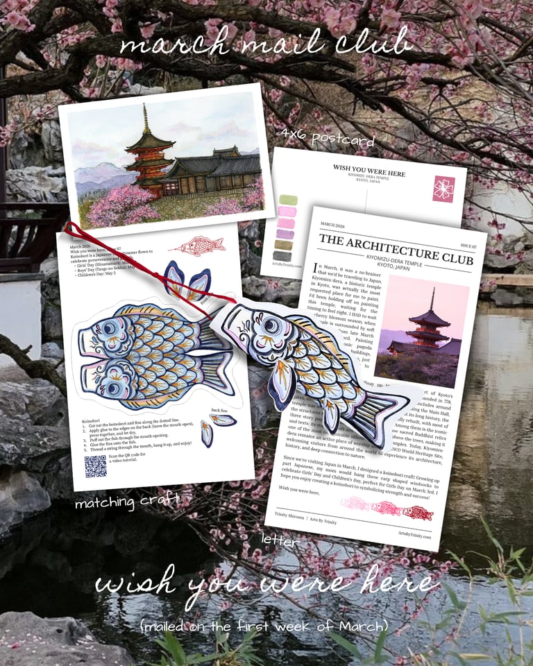 Discover new buildings and fill your mailbox every month with watercolor illustrations.